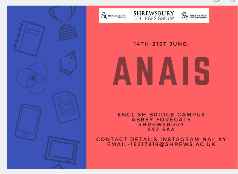 Business card promoting my own personal work that’s being held in the exhibition and the poster which is promoting the exhibition in Shrewsbury overall.
