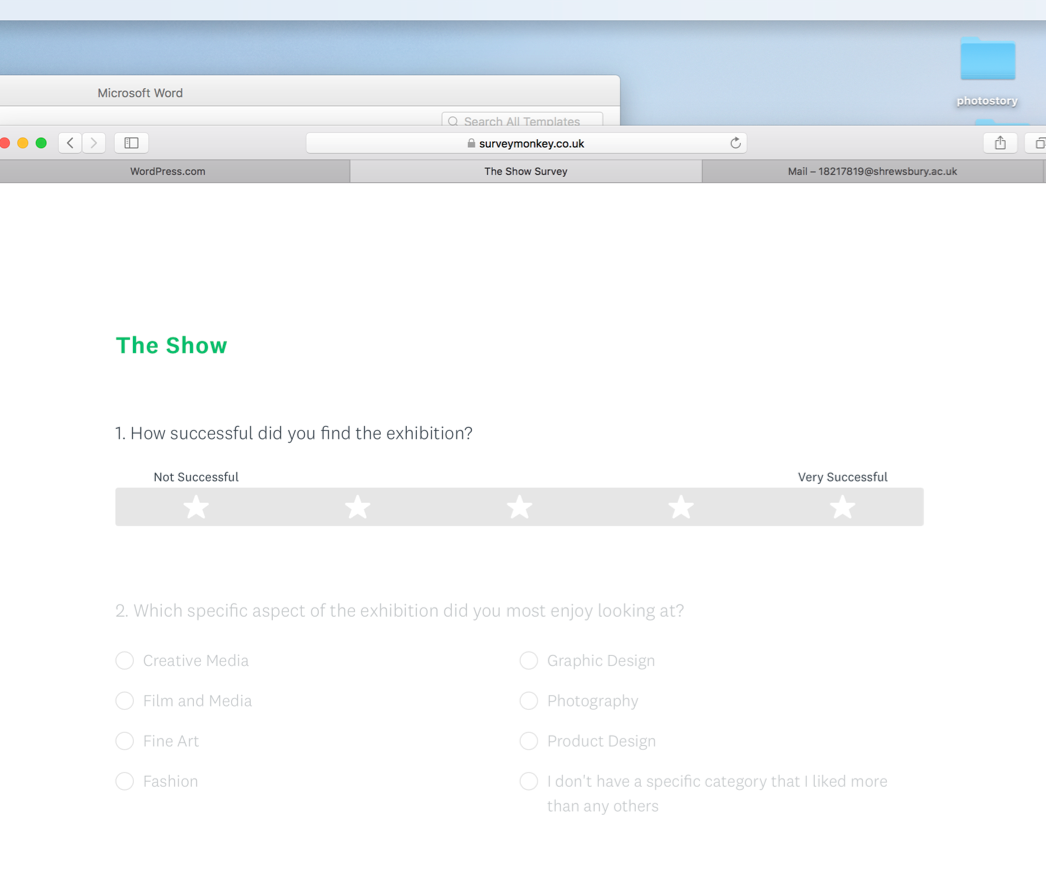 D2- Similarly to the Martin Parr exhibition that I had previously visited they included feedback forms so everyone that had visited had a voice and could put forward any problems or improvements that could be made for next time. In the colleges exhibition we have offered many survey links and questionnaires to hear feedback and give the visitors to also have an opportunity to have a voice.